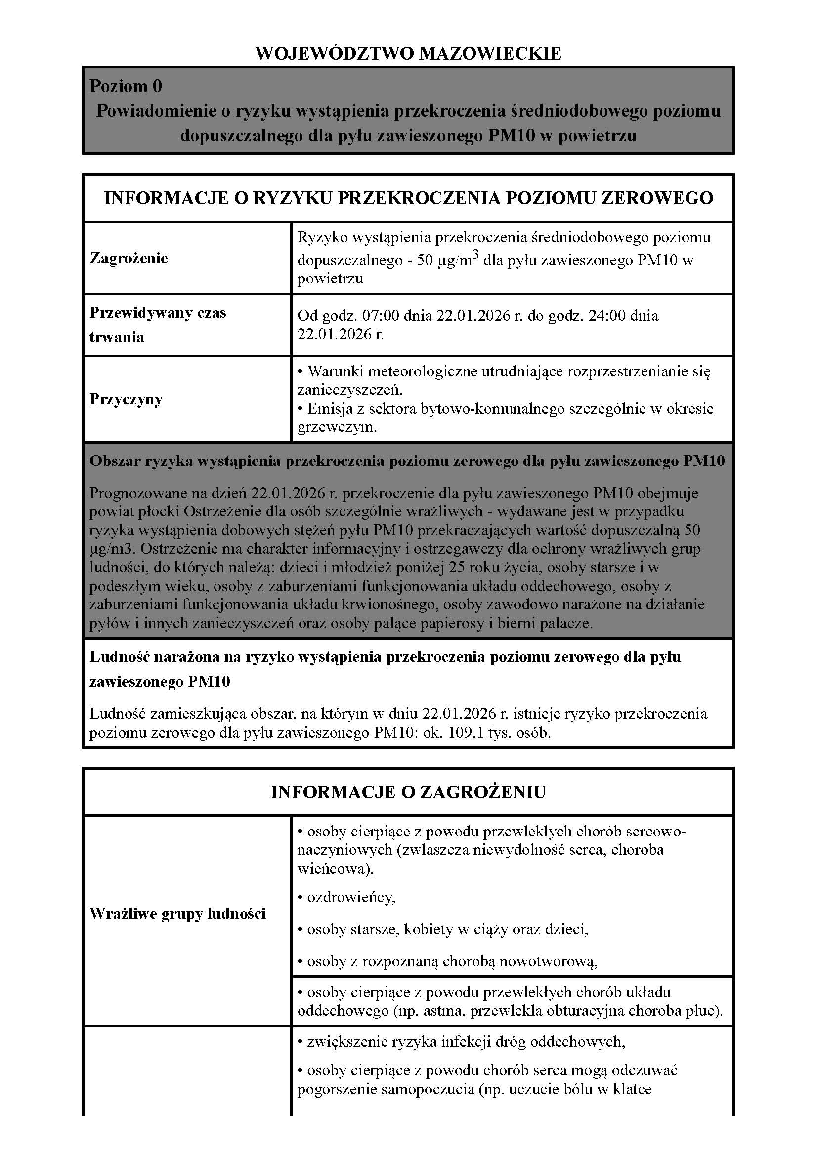 OSTRZEŻENIE O JAKOŚCI POWIETRZA – PYŁ PM10
