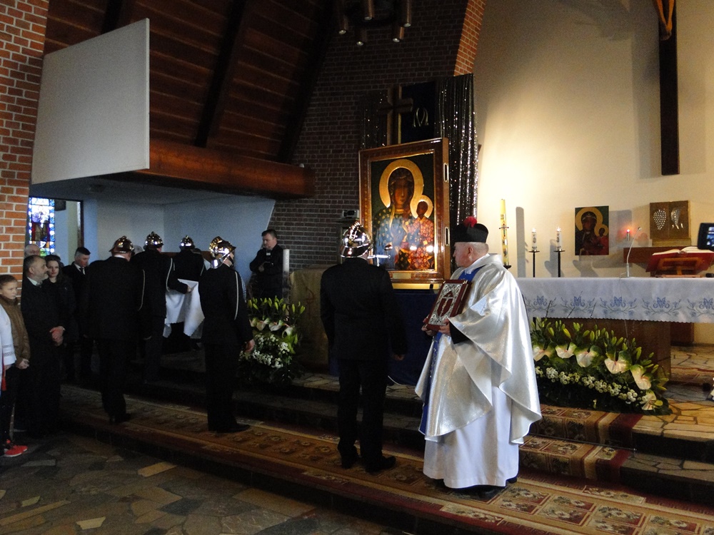 Obraz przez dobę przebywał w parafii, skąd następnego dnia tj. 25 marca 2017 r. w asyście pododdziału strażaków oraz kolumny strażackich samochodów, udał się w dalszą pielgrzymkę, której kolejnym etapem będzie parafia Słubice.