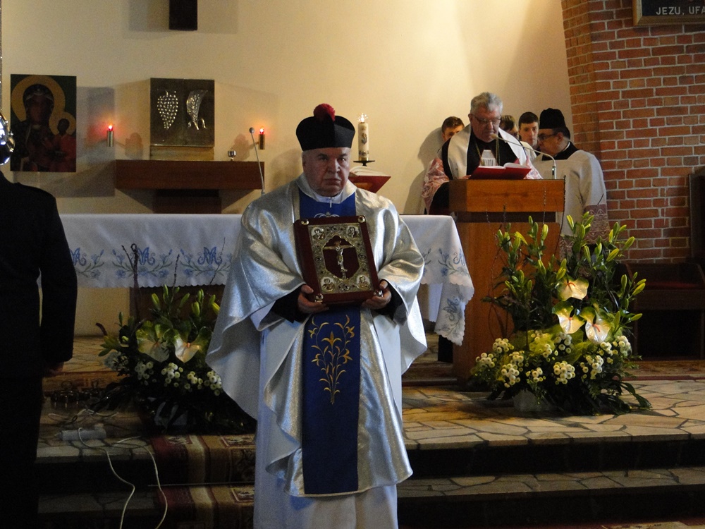 Sprawowanej w kościele mszy świętej przewodniczył ks. Biskup Józef Zawitkowski. Orkiestra strażacka pod batutą kapelmistrza Szymona Ogrzebacza uświetniała powitalną mszę świętą.