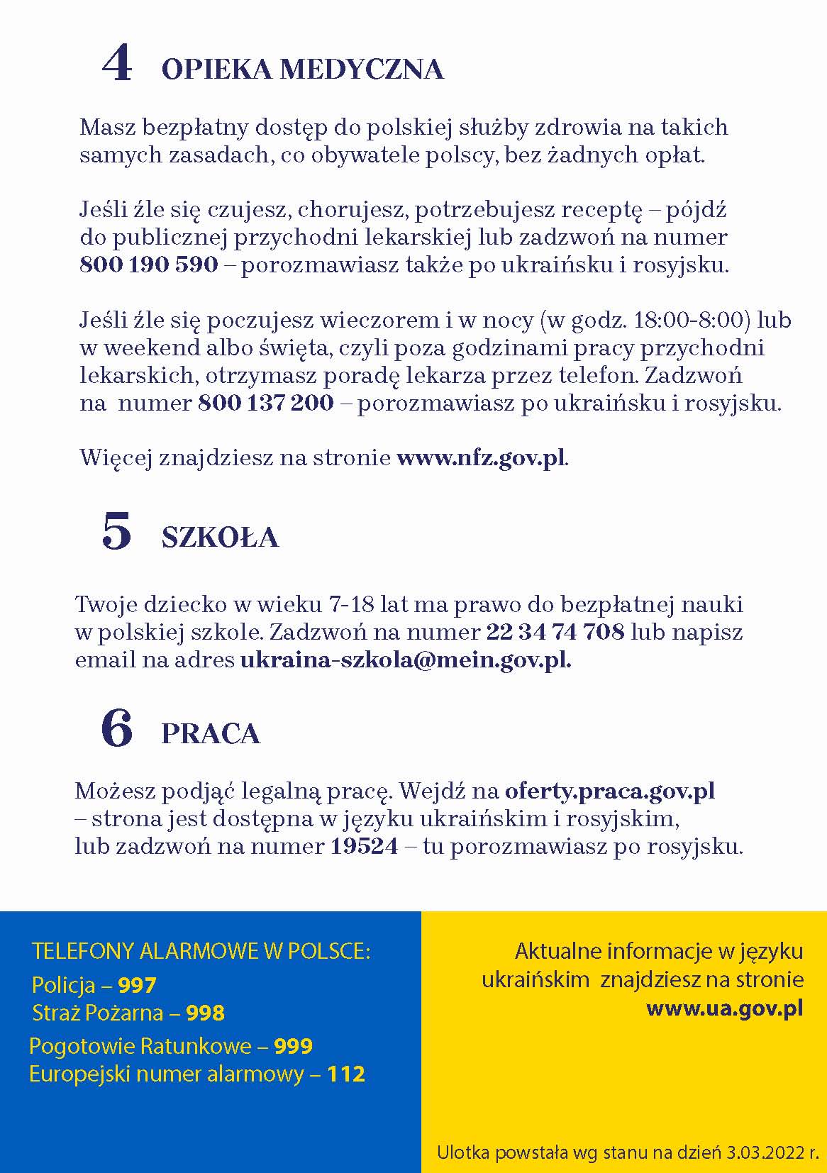 Informacje dla uchodźców wojennych z Ukrainy