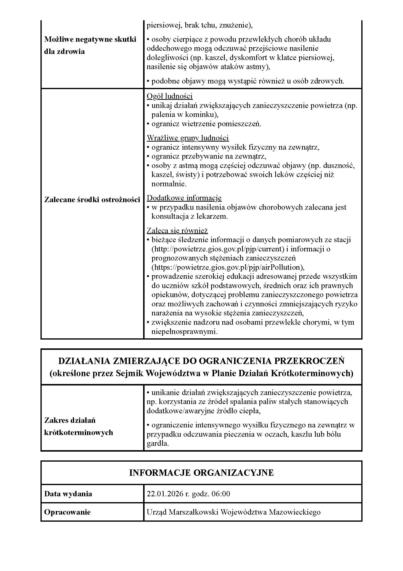 OSTRZEŻENIE O JAKOŚCI POWIETRZA – PYŁ PM10