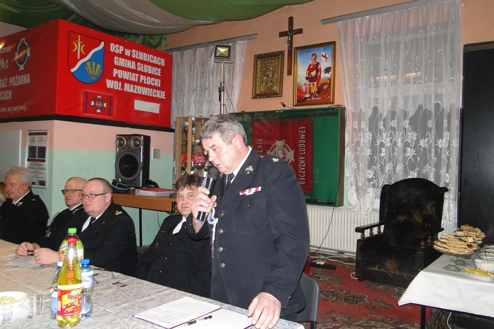 Oprócz druhów z jednostki w zebraniu uczestniczyli: Prezes Zarządu Oddziału Gminnego Związku OSP RP w Słubicach, Wójt Gminy – Krzysztof Dylicki , radny Rady Powiatu, przewodniczący komisji bezpieczeństwa – Józef Walewski, naczelnik Wydziału Operacyjnego Komendy Miejskiej PSP w Płocku – Artur Czachowski, z-ca naczelnika Wydziału Operacyjnego Komendy Miejskiej PSP w Płocku – Maciej Szutowski, przewodnicząca Rady Gminy – Katarzyna Milczarek, wiceprzewodniczący Rady Gminy – Mariusz Bartos, komendant gminny OSP – Wiesław Cichosz, sekretarz Zarządu Oddziału Gminnego Związku OSP RP – Jarosław Lenarcik, delegacje strażaków z OSP: Gąbin, Dobrzyków, Sielce, Juliszew i Łaziska, właściciel pałacu w Słubicach – Sławomir Ambroziak.